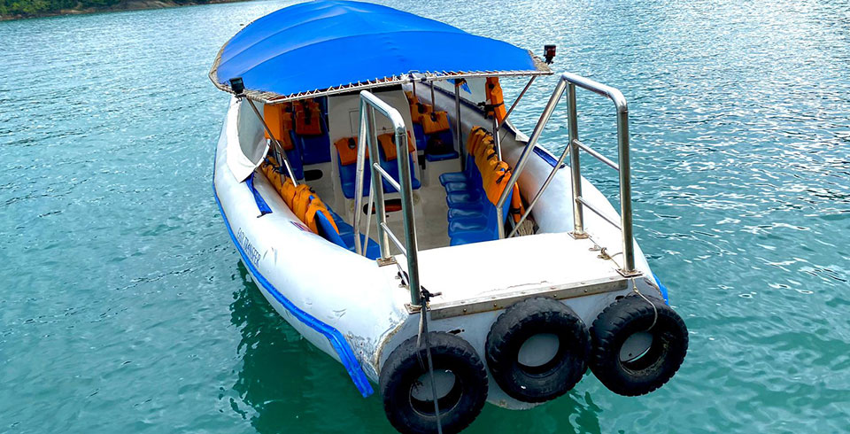 Embarcação: Flex Boat com capacidade para 30 a 50 passageiros e dois tripulantes.